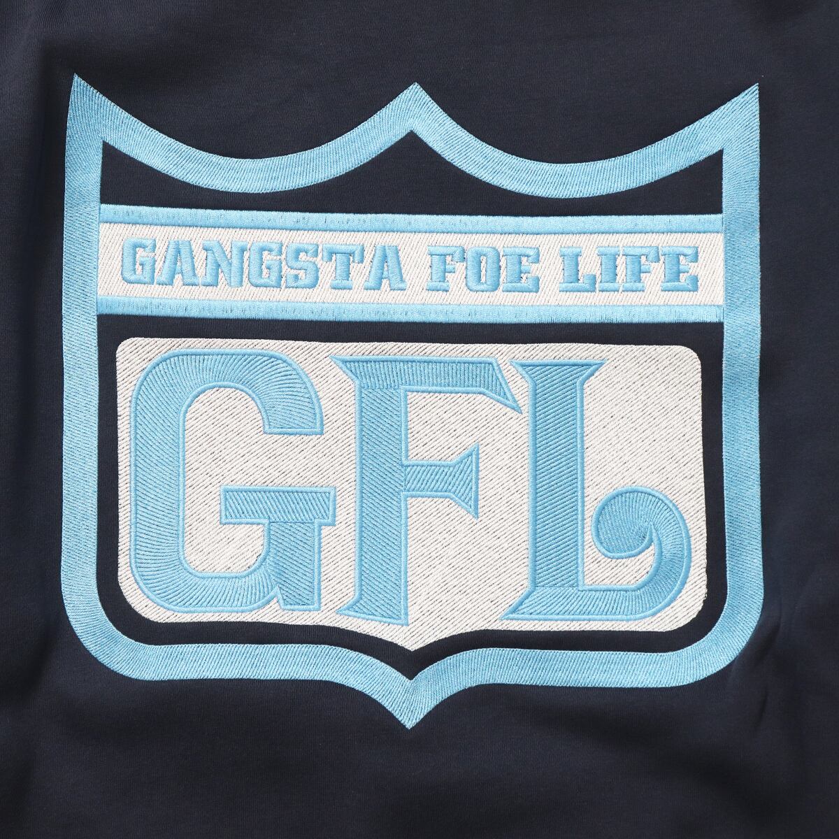 GFL (gangsta foe life) 当時の定番ロゴカラーリングを忠実に再現してフロント&バック共にAll刺繍したフーディー。