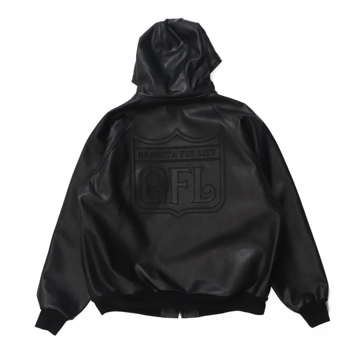 GFL (gangsta foe life) 上質な牛革を贅沢に使用した、フーディスタイルのレザージャケット。